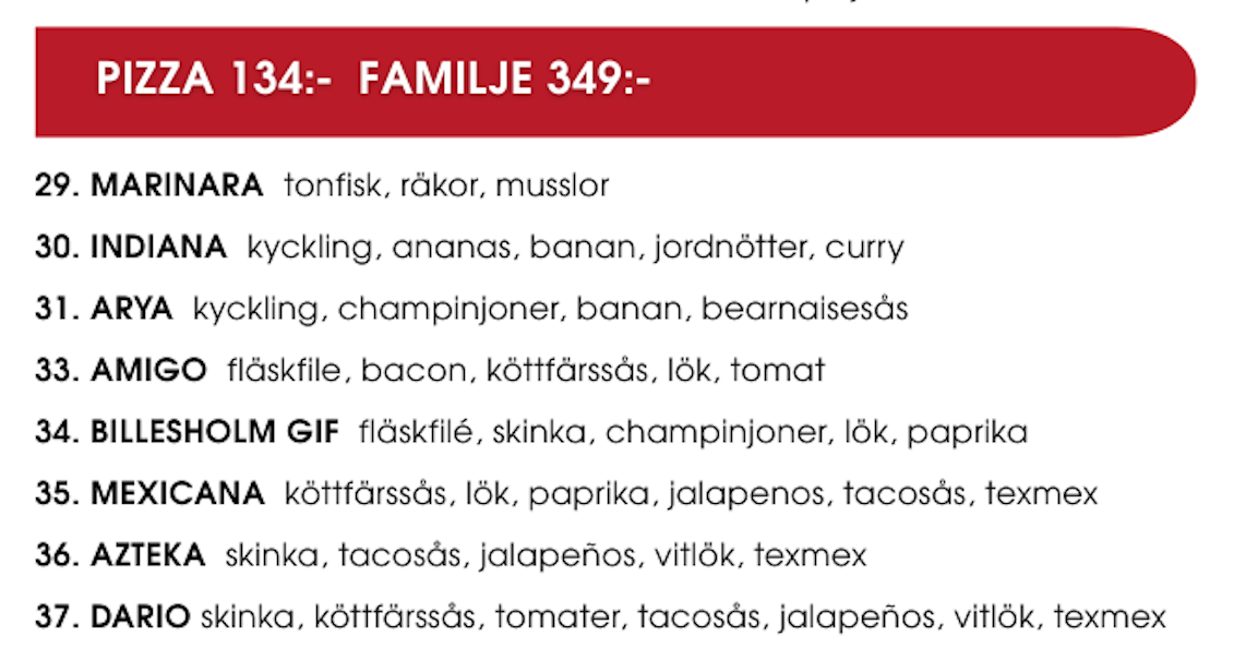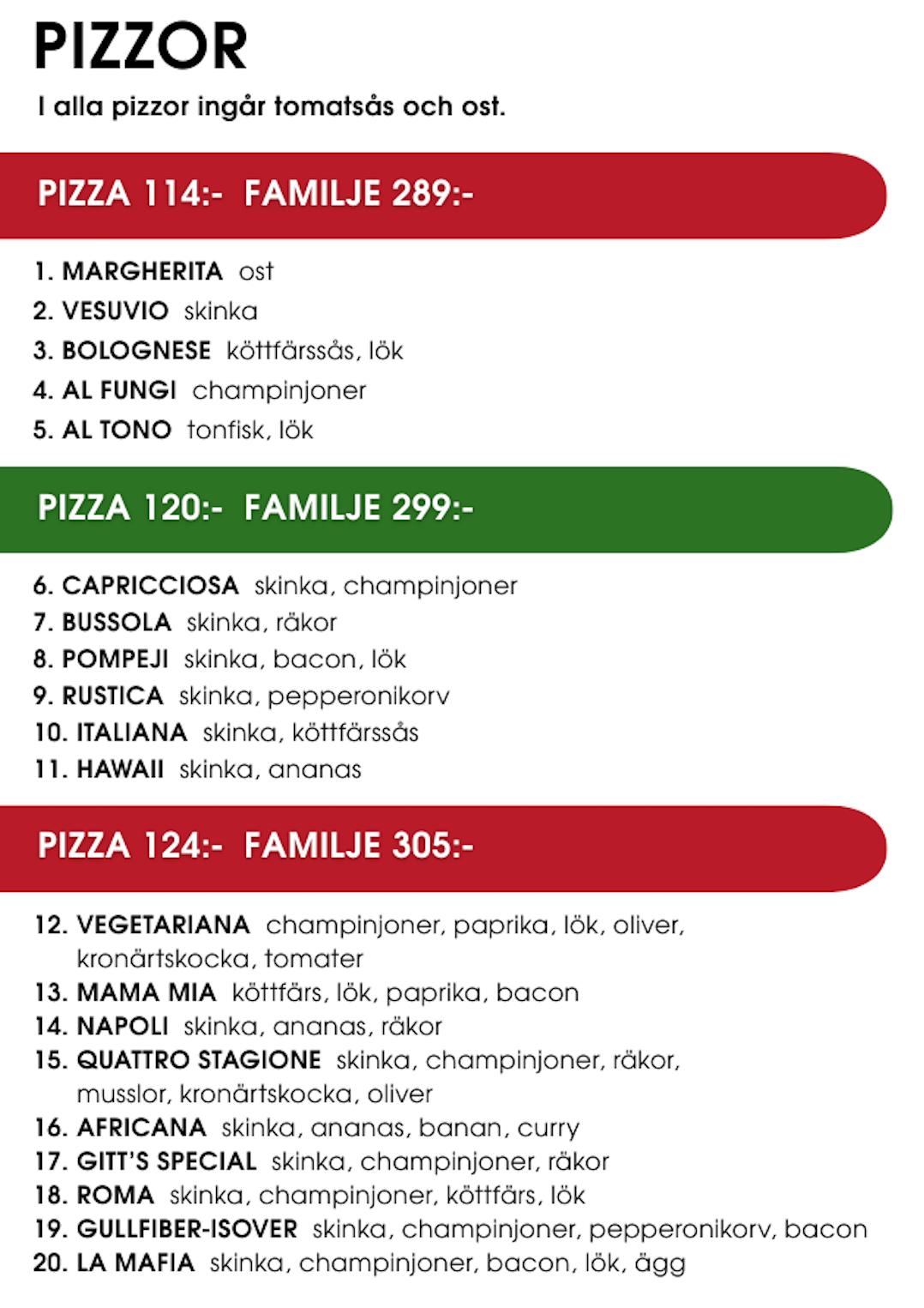 PIZZA 80:- FAMILJEPIZZA 185:-