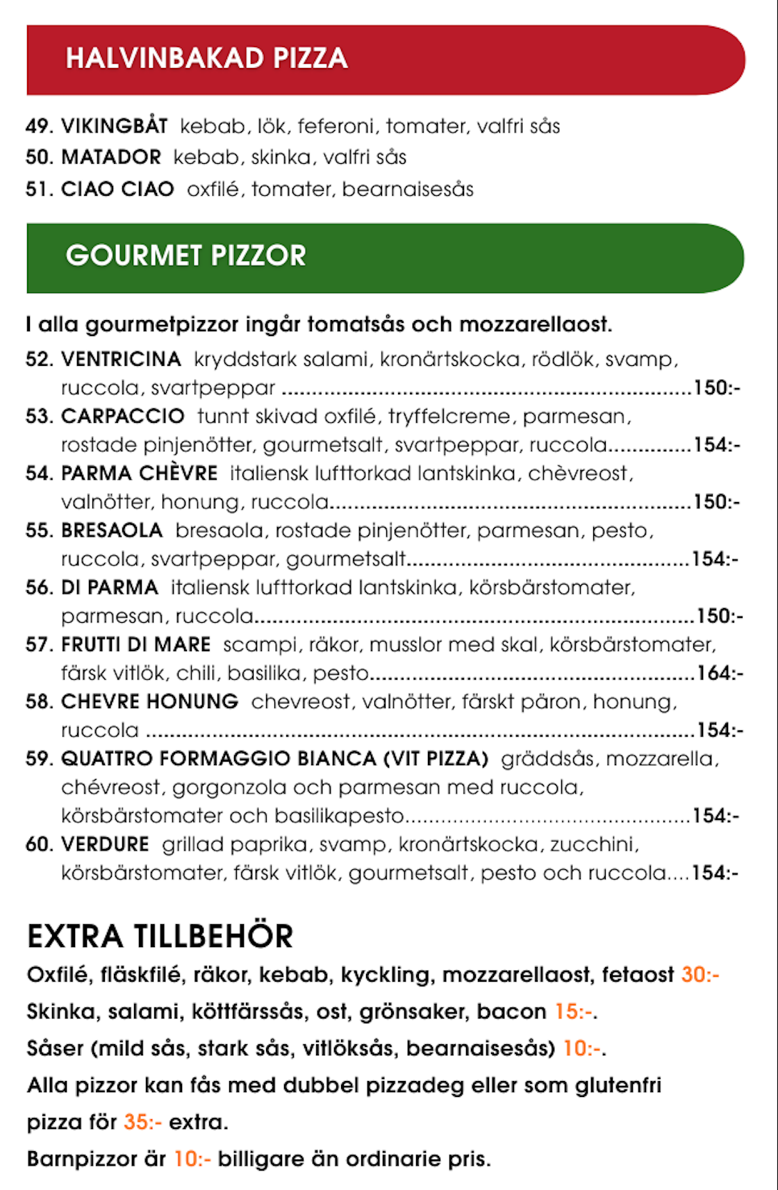 PIZZA 75:- FAMILJEPIZZA 175:-